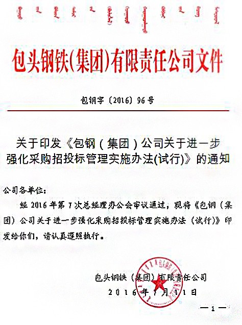 下一條:關于印發《包鋼(集團)公司關于進一步強化采購招投標管理實施辦法(試行)》的通知