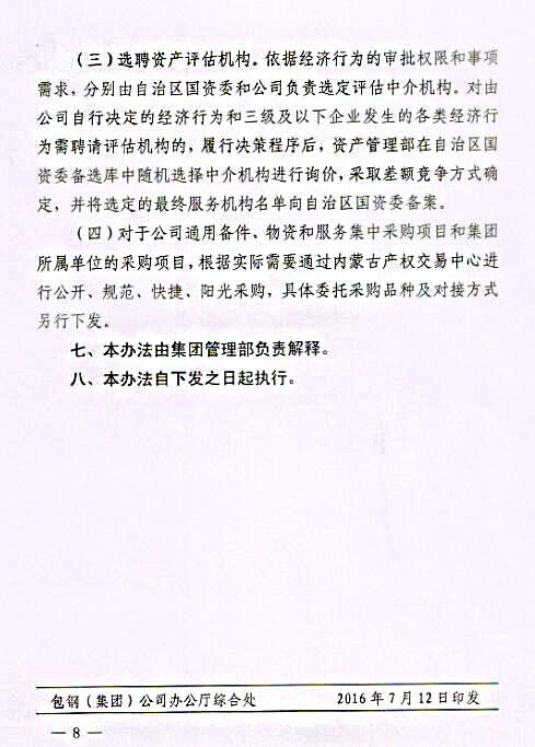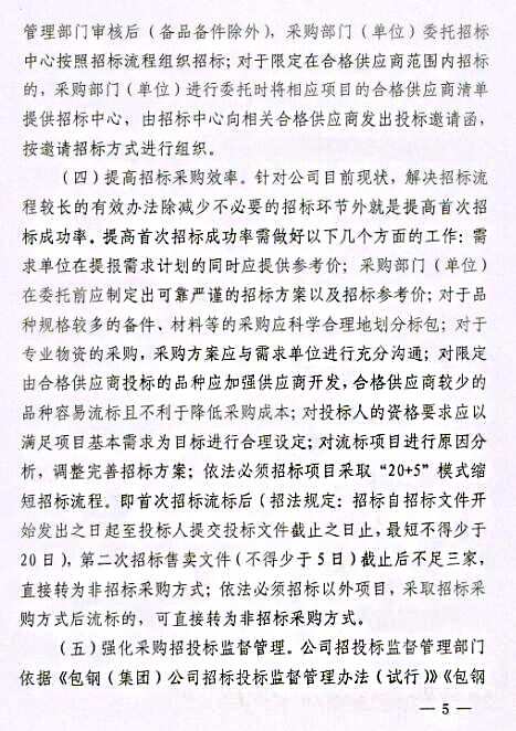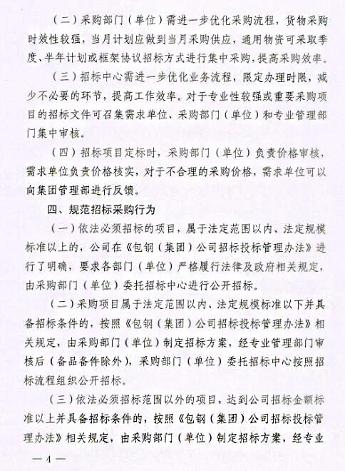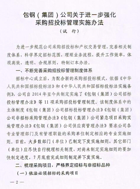 關于印發《包鋼(集團)公司關于進一步強化采購招投標管理實施辦法(試行)》的通知